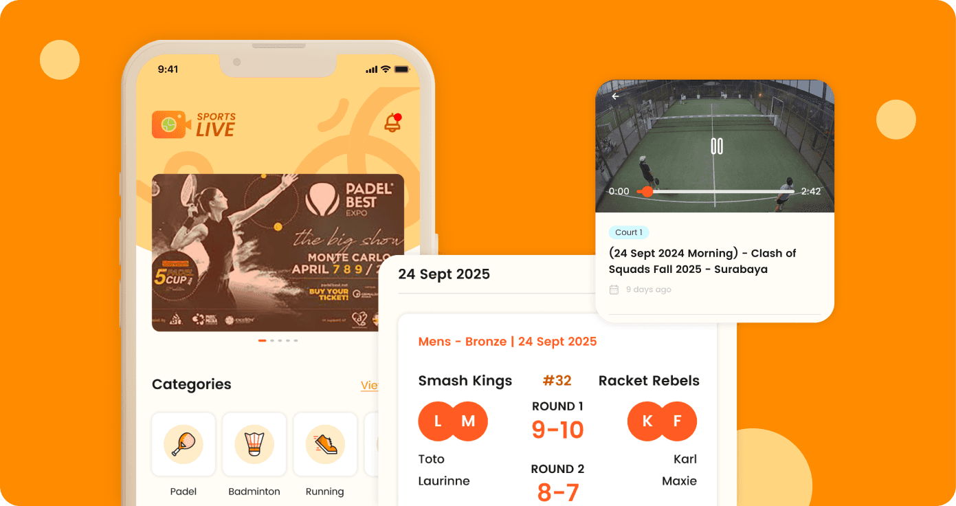 Supports racket sports and community games like badminton, padel, and futsal.